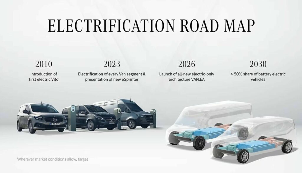 Det var ikke mange detaljer som dukket opp, men Stefanie Schmitz – tittel: Strategic Project Lead, VAN.EA – sa at fra modellår 2026 vil alle nyutviklede varebiler fra MB bli basert på en eneste modulær og skalerbare arkitektur.
